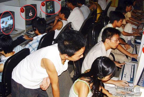 图为当时的网吧环境,我特地用红圈圈起来左边的三个屏幕,大家能猜到是哪三个游戏吗?