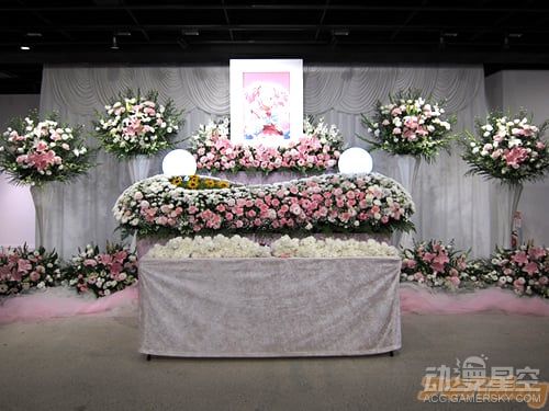 只不过考虑到逝者是动画角色,这便让庄严肃穆的气氛变得轻松了许多,加上周围还陈列着作品场景写真等展示物,所谓的追悼会更有专题漫展的感觉?此外,官方还不失时机开启了周边的贩卖,并宣布米特奥拉粘土人决定制作等相关消息,不知道身为追悼会主人公的茉美香泉下有知会作何感受……
