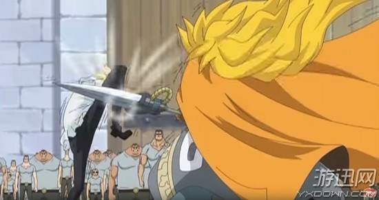 战斗开始,伽治手持长枪,使用高科技武器发动突袭,山治也用擅长的体术进行迎击。而就在山治发动“烧铁锅”,准备一决胜负时,伽治居然做出了意料之外的举动……
