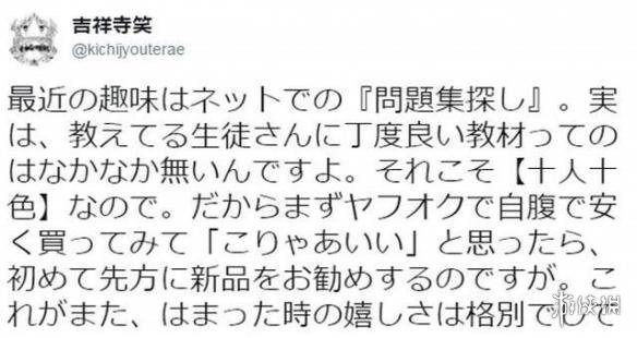 吉祥寺笑十分用心地帮每个学生寻找合适的教材,都先自己买来看过再推荐给学生,这种因材施教的作法让学生和老师都开心。而当看到吉祥寺笑如此适合从事教育行业,有网友如此建议——