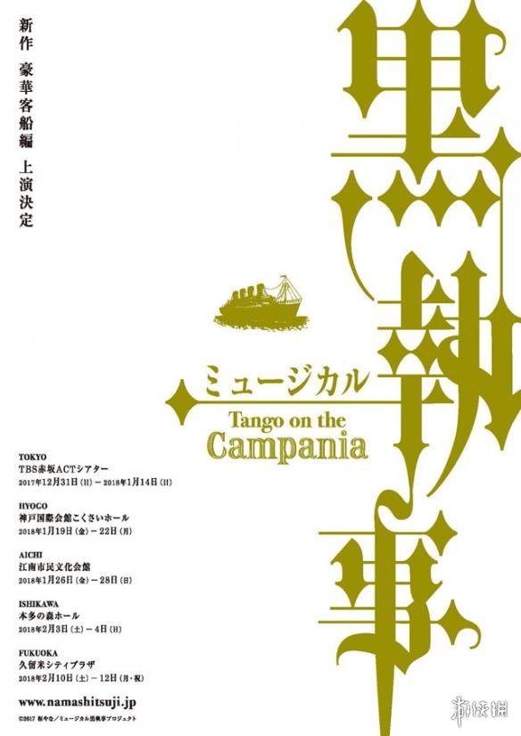 2017年12月31日~2018年2月10日期间,音乐剧《黑执事 -Tango on the Campania-》依次将于东京、兵库、爱知、石川、福冈5低公演。