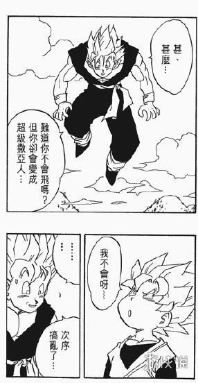 孙悟空孙悟天这两父子不知道怎么的跟天空都没什么缘分,一个要辛苦装自己不会舞空术,一个可以变成超级赛亚人了但是却不会舞空术,难道真是名字问题?一个“勿空”一个“勿天”?嗯,这么说来,“勿饭”这名字也没取好,孙悟饭并没有孙悟空那种对食物疯狂的执念,也没有很快的长大,养孩子,这名字还真重要啊。