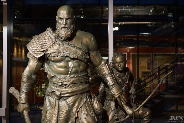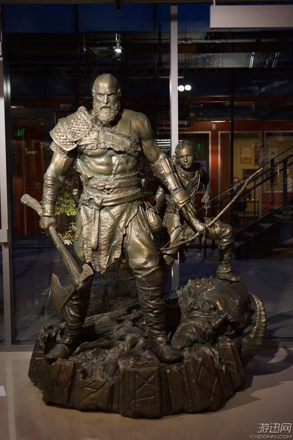 索尼PS4《战神》新作自E3展公布以来,一直深受玩家们的关注。今天,索尼圣莫妮卡工作室晒出了工作室的新装饰:一组霸气逼真的奎爷父子雕像。这尊雕像由圣莫妮卡的艺术总监Raf Grassetti设计,细节用心、造型逼真,奎爷的大胡子和肌肉看起来都非常有“质感”。
