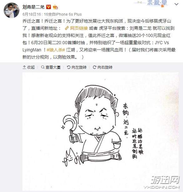 作为狼人杀泰斗人物,二龙强势加盟虎牙直播牵动着无数玩家的心。昨日,二龙在微博曝出, 即将入驻虎牙直播平台,众多粉丝们放出豪言,二龙去哪里,我们就跟着去哪里!