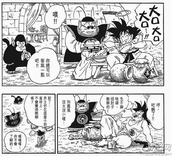 《龙珠》里面的赛亚人好像都很重口味就是了,还记得贝吉塔第一次出场的时候吃的那顿大餐么?放心,笔者没那么变态,不会把那个场面也拿来放毒的。之后弥次郎兵卫吃的那条魔龙也不会放出来,毕竟是连孙悟空也感觉重口的食物啊。