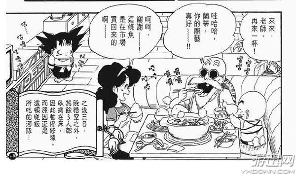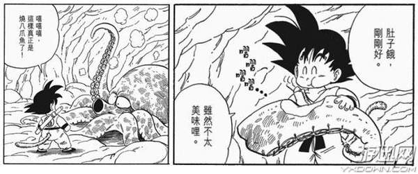 总之,孙悟空吃了这条鱼之后战斗力马上回复就是了,还好鸟山明先生的画风清爽,就算是这么奇怪的烤鱼,看上去也会让人感觉是比较正常的食物。