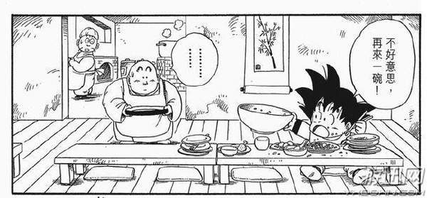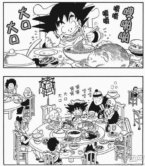在龟仙人看类似“郑多燕”舞蹈的时候,孙悟空大快朵颐,这顿美餐美中不足的是,基本都是冷餐啊,没准有的还是生的,不过孙悟空山里孩子,倒应该也没那么讲究。