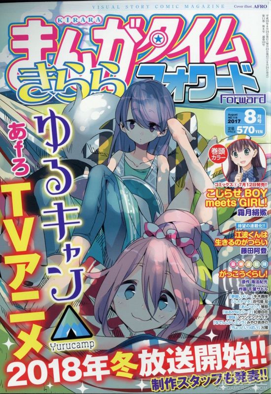 最新一期《Manga Time Kirara Forward》封面上,官方给出了《摇曳露营△》TV动画定于2018年冬季(1月)开播的情报,并宣布动画制作公司为出品过《星刻的龙骑士》、《高校星歌剧》等动画的C-Station。