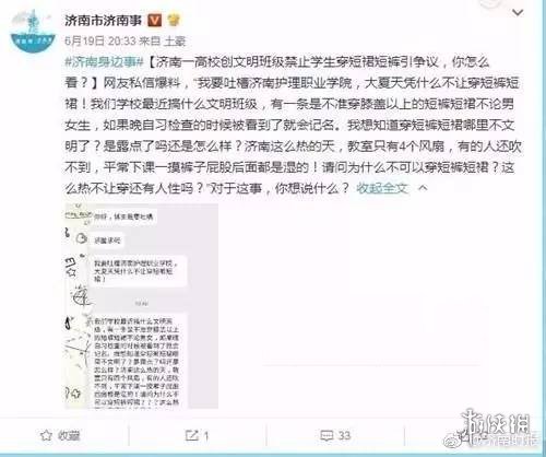 近日,有网友爆料称,济南护理职业学院正在进行文明班级评选,其中一条标准是禁止穿着露出膝盖的短裙短裤,不论男女。这一规定,引发部分学生质疑:天气炎热,穿短裙短裤又不会不文明,不知学校为何要禁止?