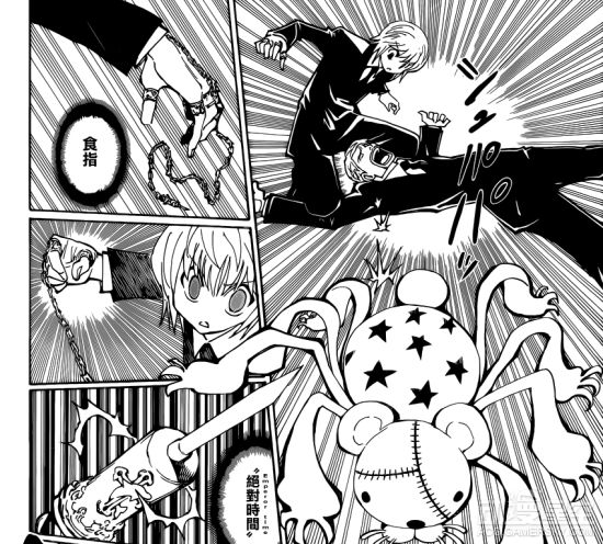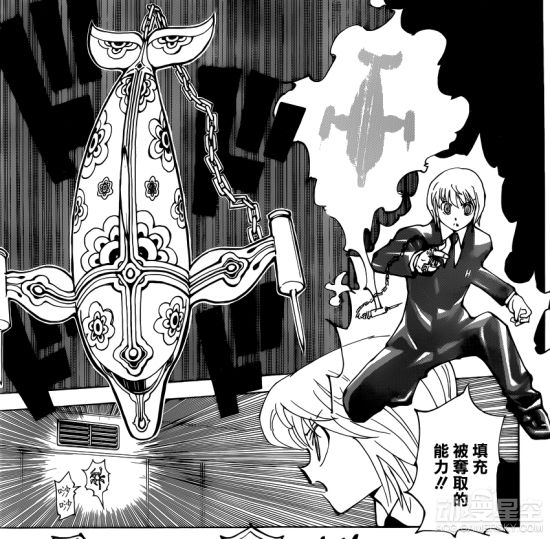 《全职猎人》361话汉化版上线,面对被控制的能力者,酷拉皮卡展开了食指的能力,他的食指具现化出锁链,链的前端有一管针筒,使出了剥夺的食指之锁,这也是酷拉皮卡首次展现他食指的能力。