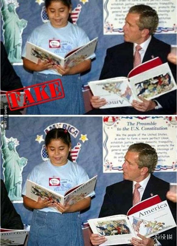 小布什拿倒书:现实中小布什没有拿倒,这是PS的。那个时候PS不像现在怎么普遍,所以骗了很多人。
