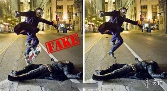 蝙蝠侠和小丑:小丑确实曾经从蝙蝠侠身上跳过去,但滑板是合成的。