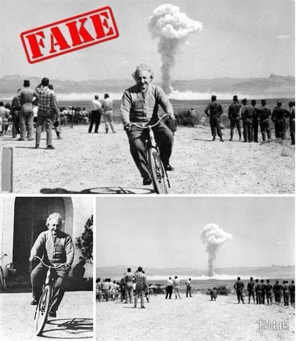 爱因斯坦和大爆炸:很多所谓的爱因斯坦名言都不是他本人说的。这张照片也是假的,那是1962年内达华州的核试验,7年前爱因斯坦就去世了。