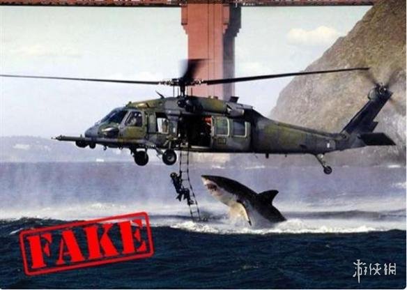英国海军演习现场遭遇大白鲨偷袭:这是网路上最早开始流传的一批假照片。其实照片中的是美国海军,当时他们在金门大桥附近,根本没有见到什么大白鲨,跃起的鲨鱼是合成的。