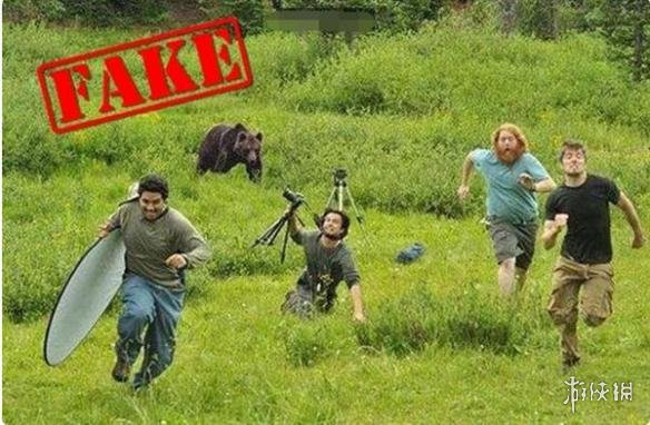 野生动物摄影师被熊追赶:拍摄野生动物的时候经常会发生意外,但这张照片是合成的,就是为了博人一笑而已。