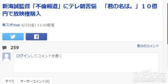 2、日媒爆料:电视台斥资10亿日元购买《你的名字》