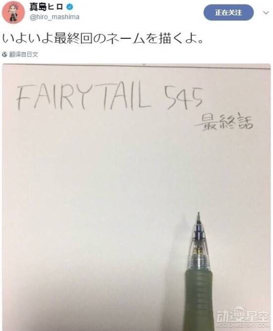 《妖精的尾巴》作者真岛浩发推特表示,目前正在绘制《妖尾》最终第545话的内容。作品从2006年8月开始在《周刊少年Magazine》上连载。新闻详情>>>