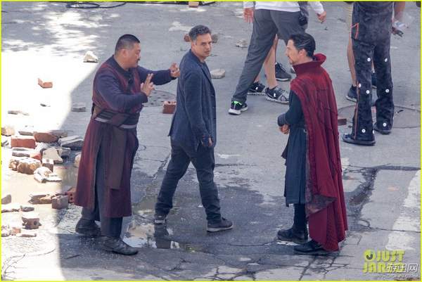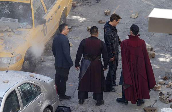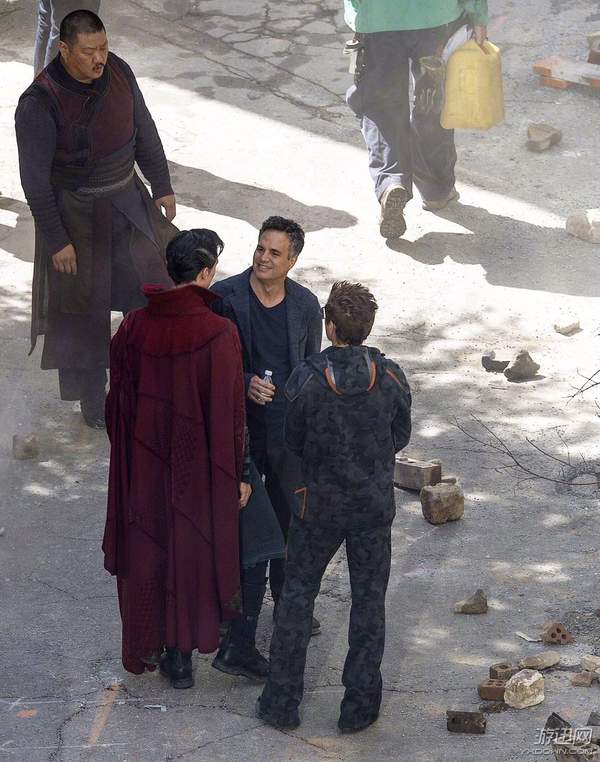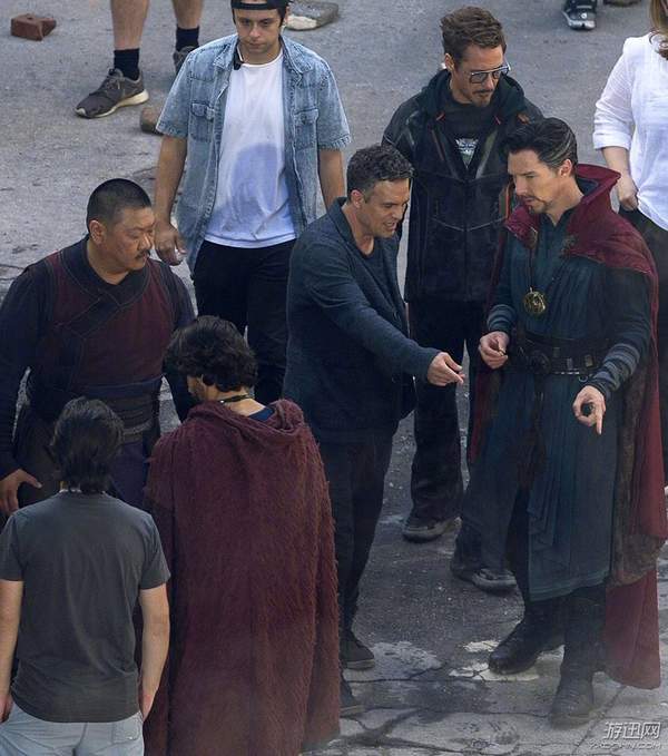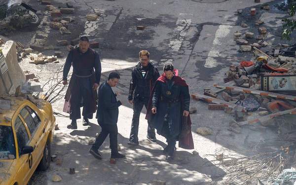 漫威第三阶段重磅电影《复仇者联盟3》目前正在美国亚特兰大如火如荼的拍摄中,虽然我们还不知道拍摄进度到哪儿了!但是,今日有外媒曝光了该片的最新最新片场照,只见“卷福”奇异博士,“小萝卜”钢铁侠,“鲁法洛”绿巨人纷纷现身,还有“王先生”,大家站在纽约废墟上紧张拍摄,看来《复联3》战况很强悍。