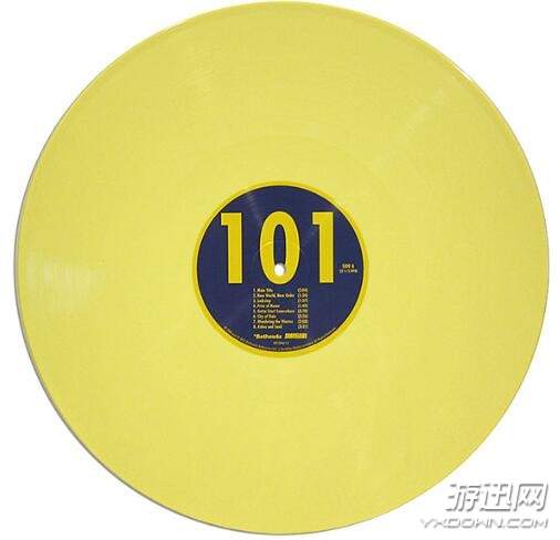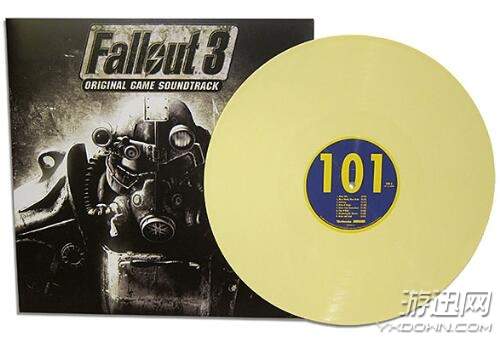 《辐射3:游戏原声》独家黑胶碟中包括了Iron Zur制作的14首原声乐曲,同时还将颜色从黑色改成了《辐射》风格的明黄色。