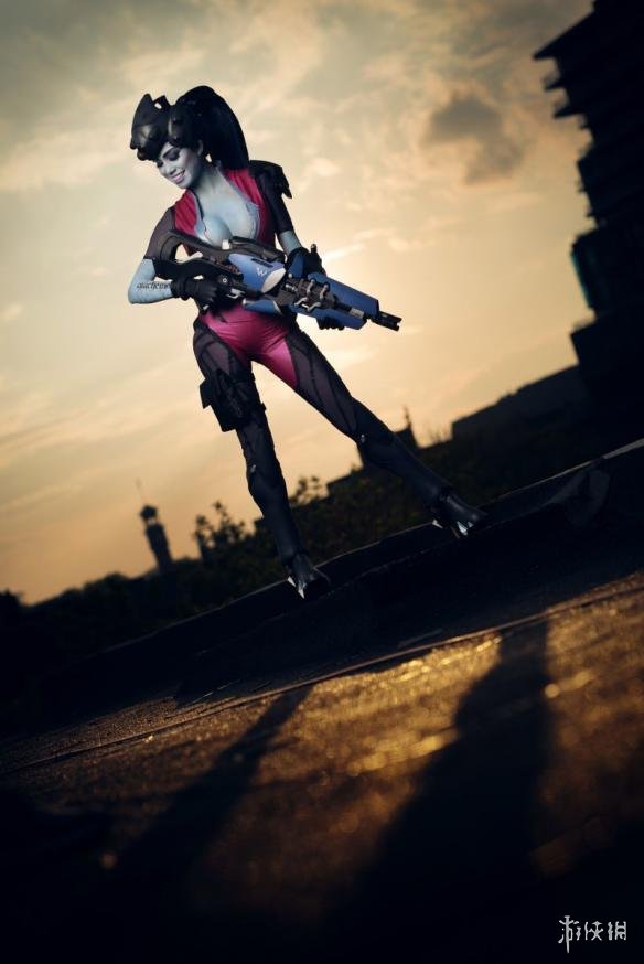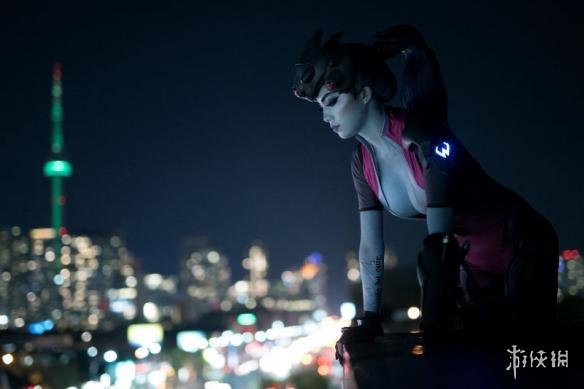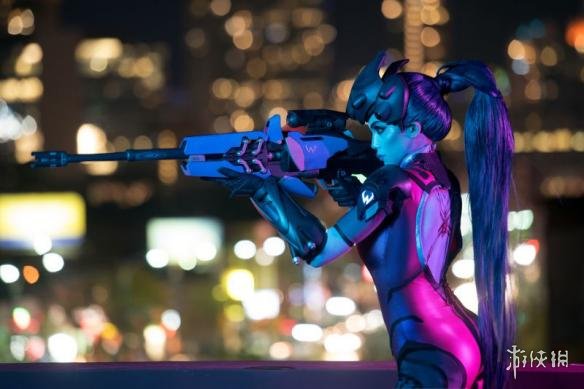 这位Coser身材超好,一双豪乳颇为吸睛,背影看上去也相当诱人。并且Cos用到的服装、道具都非常精细,夜幕下黑百合的肩部还会发光,而她的枪也是可以活动的,甚至连身上的纹身也都完美还原。