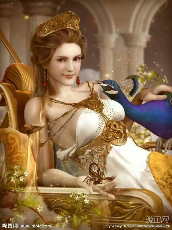 天后、贵妇的庇护神、掌管婚姻和生育。又被罗马人称作朱诺·莫纳丽达,克洛诺斯和瑞亚的第三个女儿,宙斯的姐姐和夫人。