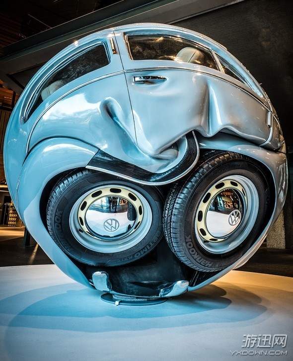 一位50岁的印尼雕塑家Ichwan Noor就为我们秀了一手,原来汽车还能这样玩!IchwanNoor的专长是立方体与球形艺术,设计了一个扭曲的大众甲壳虫的雕塑,看起来完全违背了物理学的规律。