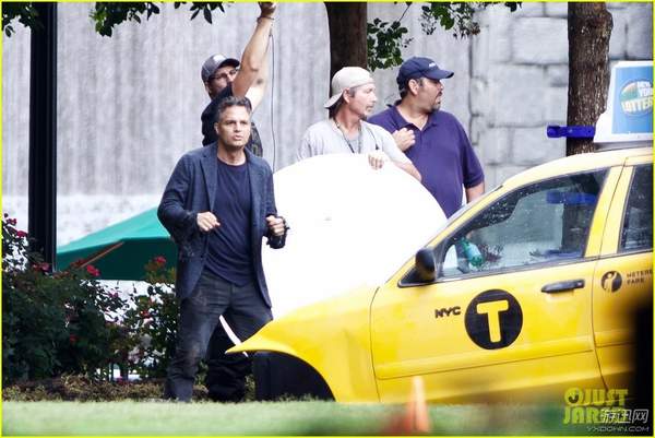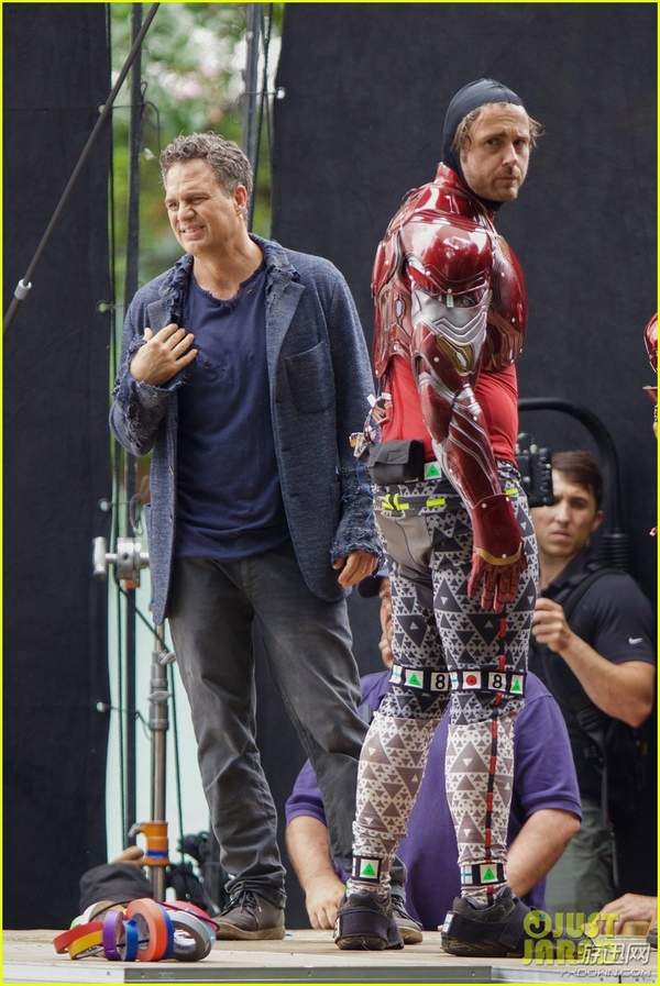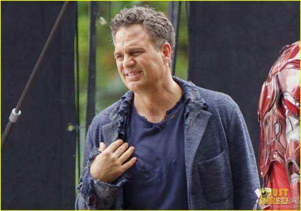 虽然和之前的几批片场照差不多,还是能看出来一些细微的差别,马克·鲁法洛饰演的班纳博士衣服变得破破烂烂的,一副战损后的装扮,仿佛是在变身绿巨人前的状态。
