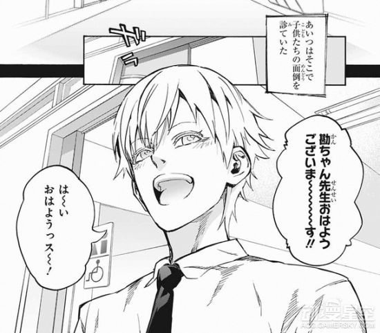 数年之前,勘九郎还是一名开朗和善的医生,他负责照顾医院里收留的小孩子们。与孩子们接触是一件非常快乐的事情,在这期间勘九郎深受大家的信赖,他的样子也与现在的阴暗截然相反,但这种表现似乎引发了同事们的议论。