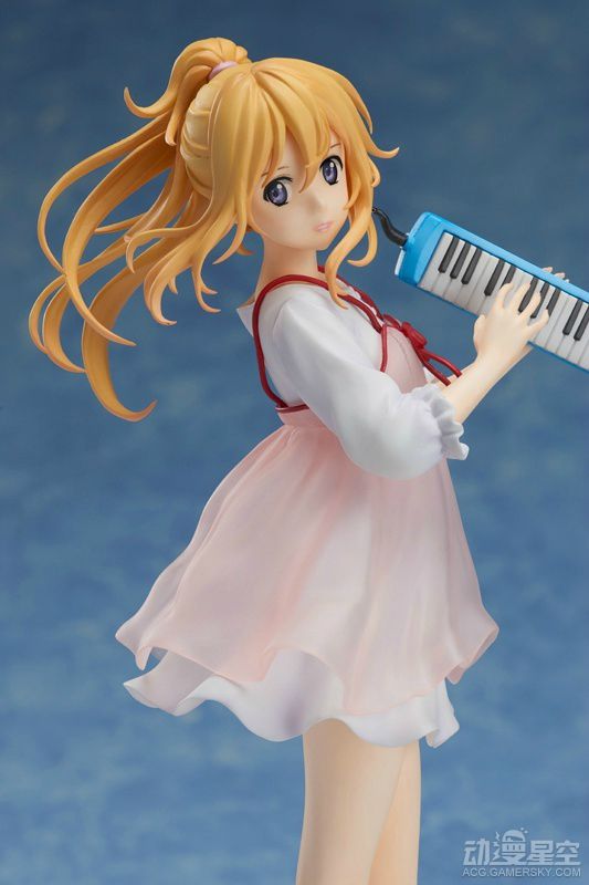 此外,这款宫园薰手办的造型沿用了动画版作画监督爱敬由纪子的最新插画,随风飘舞的金发、裙摆和光洁秀丽的美腿都充满了清纯的气质,令人重新回忆起当年那经典的一刻。
