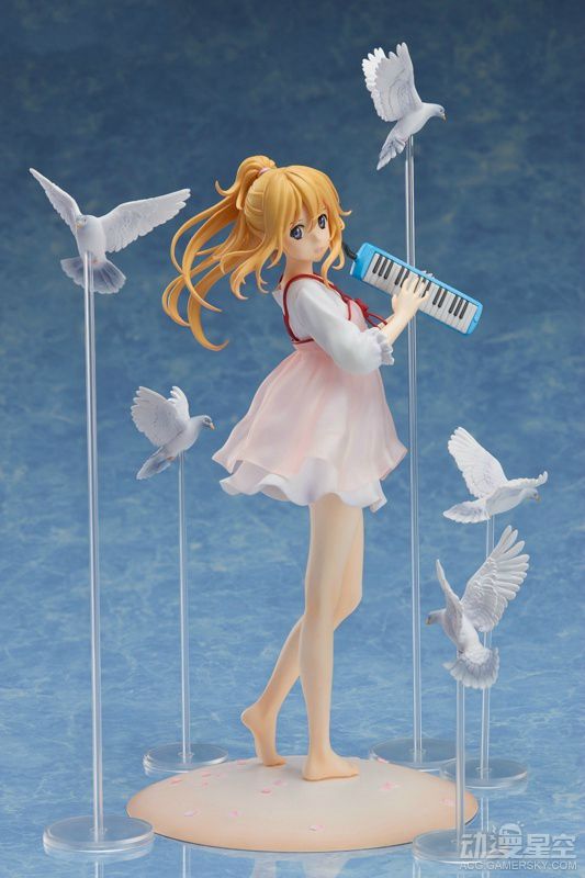 根据官方介绍,本款宫园薰手办是Aniplex+推出的《四月是你的谎言》第三弹作品,相比前两作的制作水平和细节处理更加优秀。手办还原了动画第1话里薰与公生首次相遇时的场景,此时的薰手持口风琴赤脚站在公园的建筑上,配合飞起的鸽子和脚下散落的花瓣更加突出了她的音乐才华。