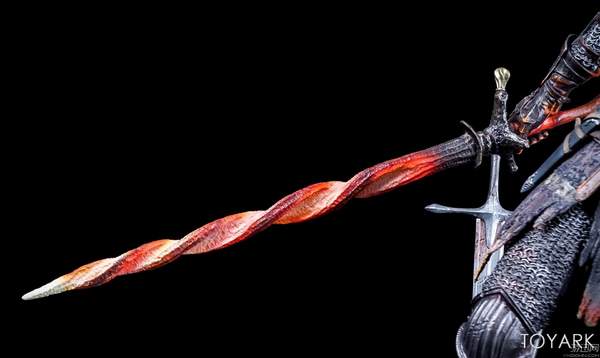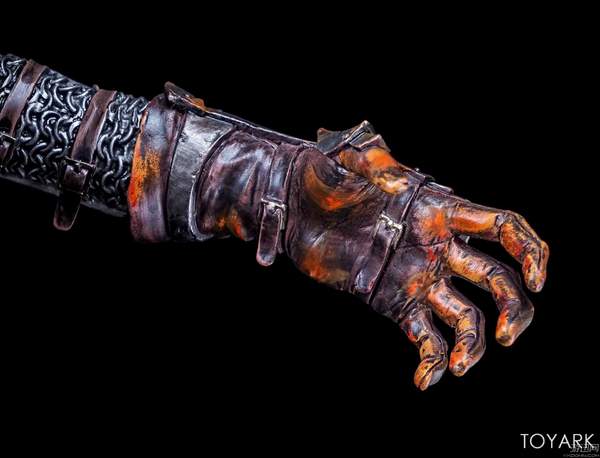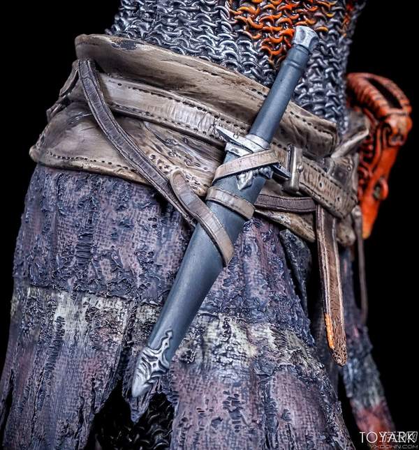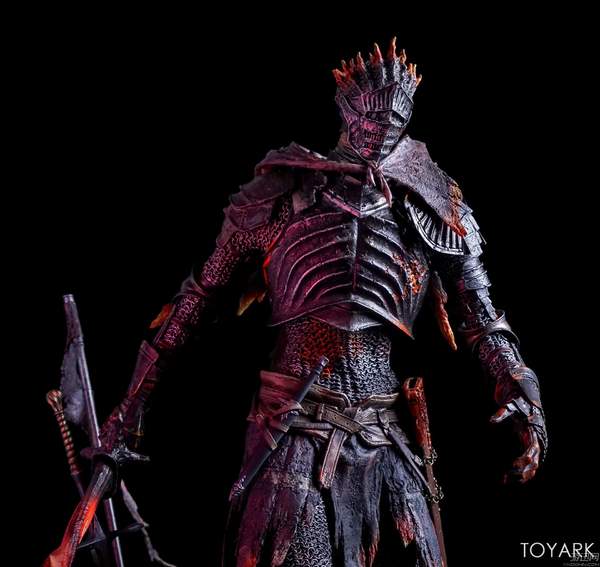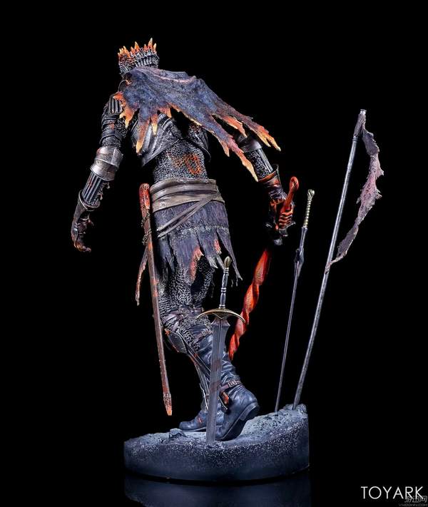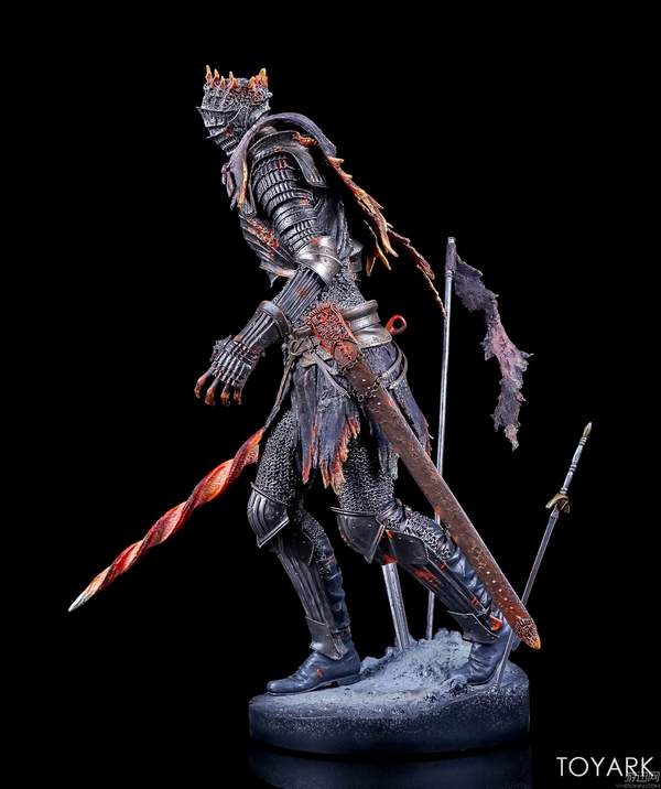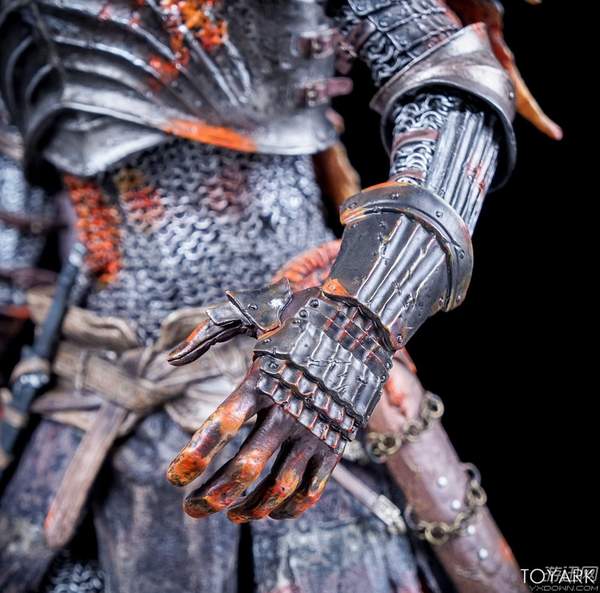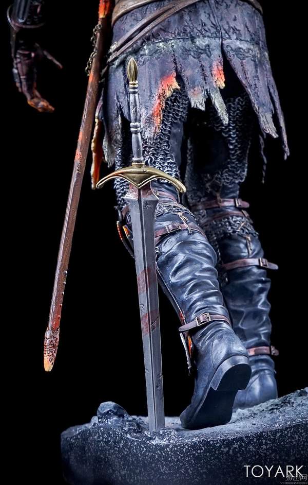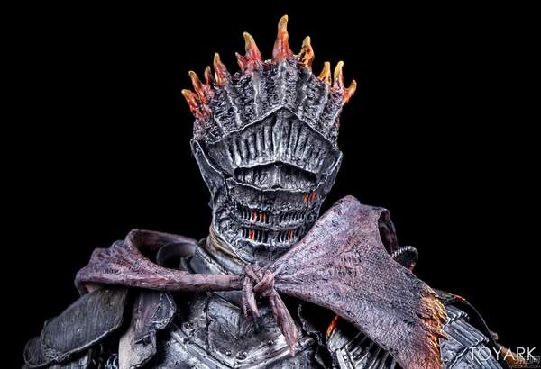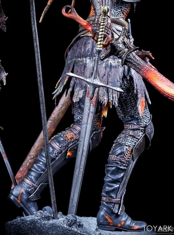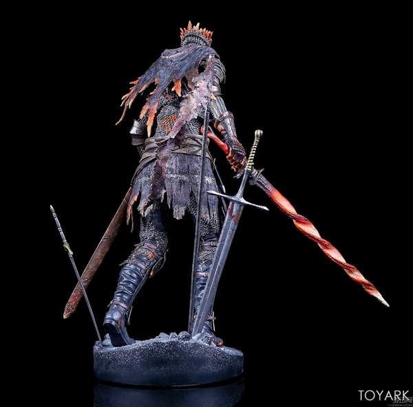 全高约42CM的薪王化身手办做工非常对得起它的价格,手持传火大剑,制作方将精细做到了极致,完完全全的还原了在游戏中的样子,底座上还有两把剑和一杆已经破烂不堪的旗帜。