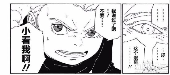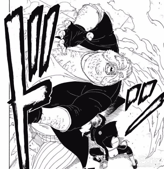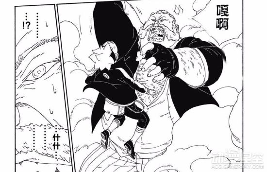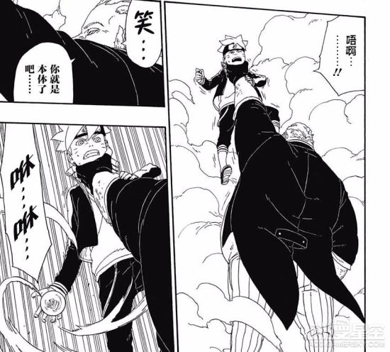 千钧一发的时候,狢突然松掉了博人,原来是天统在背后打中他,博人抓住机会,在狢背后使出了螺旋丸把他打倒。这场战斗是博人和天统的配合战,看来狢是“识别”不了的。