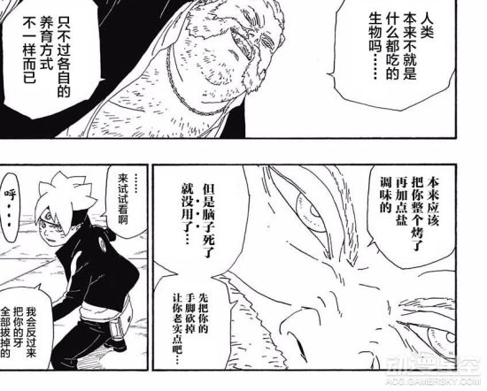 狢表示这种吃人脑子的行为没啥大不了的,之后博人用雷三联和螺旋丸向他攻击,但是都被狢用一种独特忍术反弹了回去。