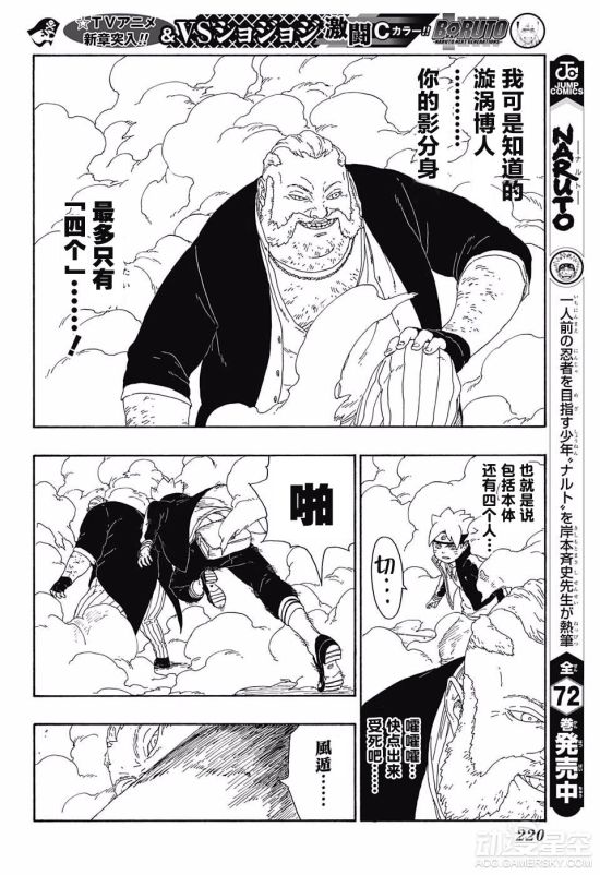 《博人传》漫画第14话汉化版公开,本集就是博人营救天统的全过程,那个自称会“尸分身之术”的“狢”首领在看到博人之后打算吞噬掉博人。而且他还会一种风屏障,可以让自己认识到的忍术全部反弹回去。博人也是遇到了大危机,幸好天统也加入了战斗。