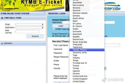 然而最近我们可爱的宝岛台湾又有点没有自知之明了。据台媒报道,马来西亚铁路订票网站(KTMB)也将台湾标志为中国的一省,港澳反而没被标注。对此,台湾防务部门近日强调要求更正。 ?