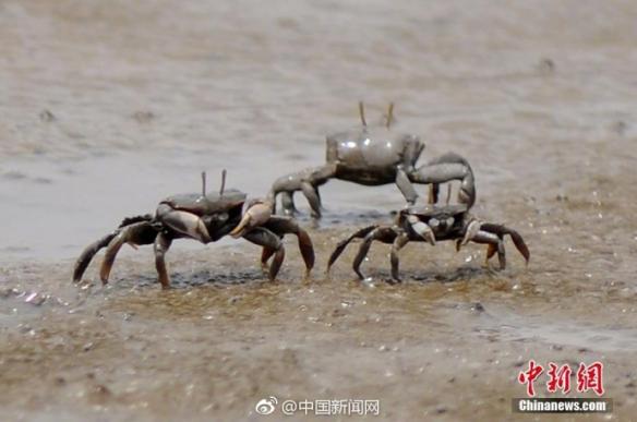 前阵子不是流行去丹麦挖生蚝赚钱的消息么,大家赶紧把这个念头打消吧,现在又有了一个发财的路子!就在国内,去青岛捉螃蟹!日前,在山东青岛,由于退潮,不计其数的滩涂蟹和弹涂鱼走出洞口,在泥水中穿行觅食,数量庞大,密集场面蔚为壮观。