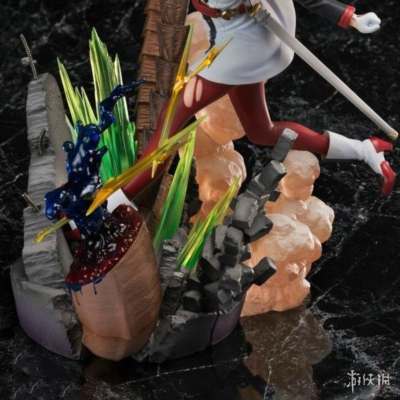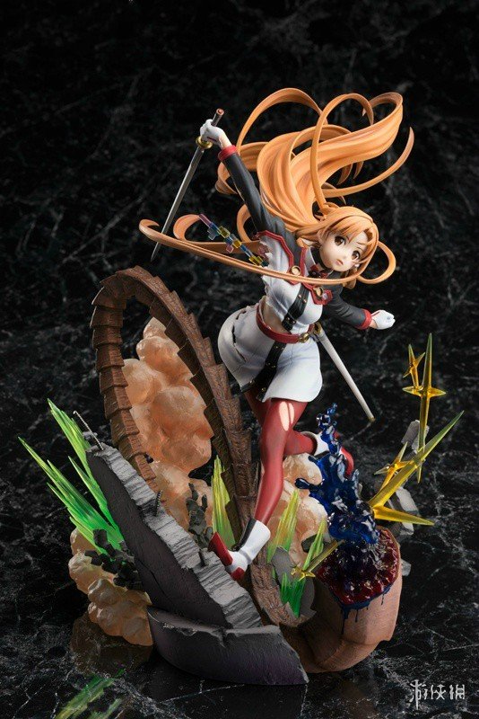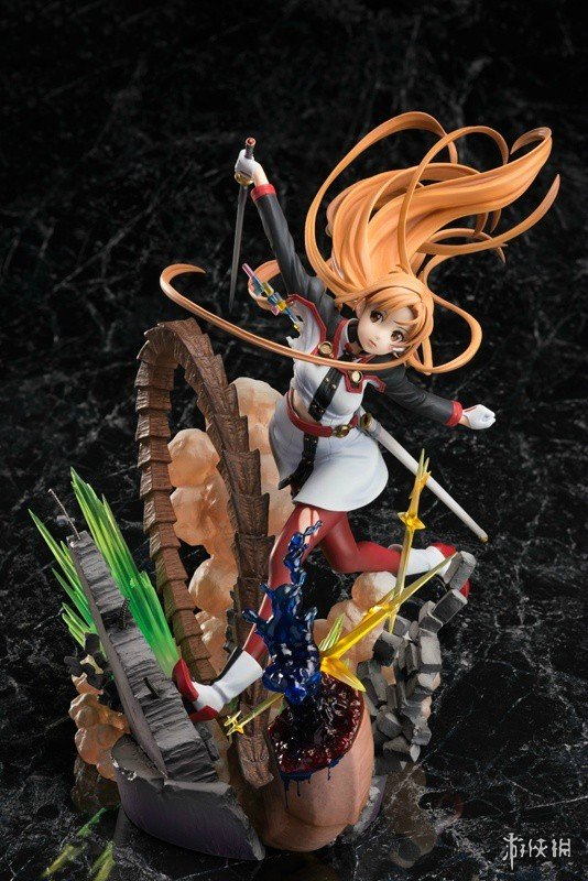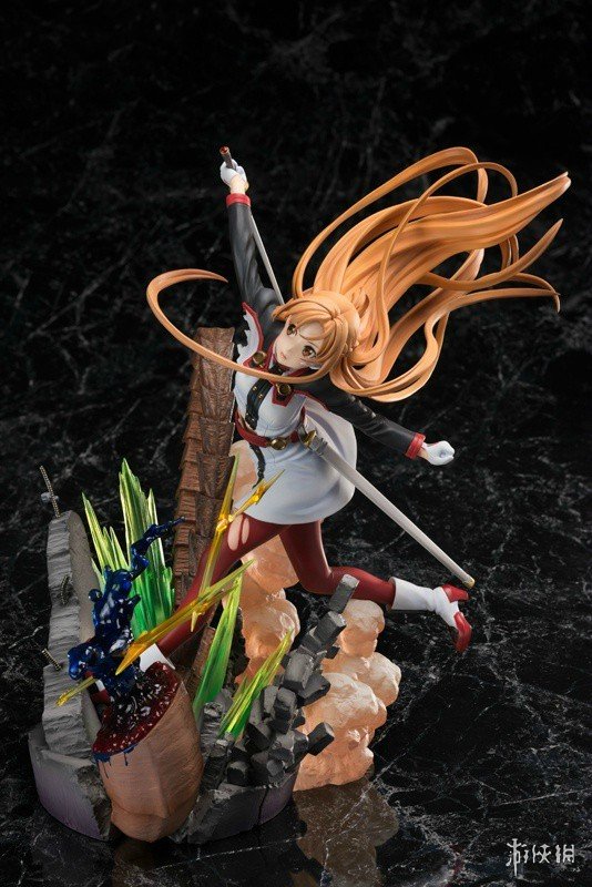 本款手办由《序列之争》剧场版的角色设定师足立慎吾参与监修,最大程度上还原了亚丝娜的闪光魅力。造型方面,亚丝娜手持佩剑进行迎战,她的长发随风肆意飘舞,丝袜部分出现破洞,这些细节都充满了灵动感和张力。此外,手办底座独具匠心地被设计成战场的残垣断壁形状,配合五彩的特效更显夺目。
