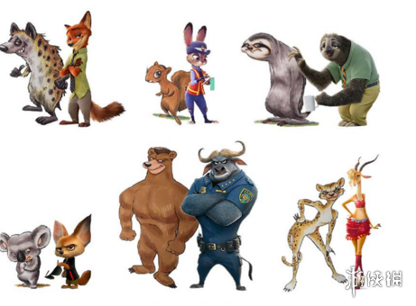 (在每一组动物中,左边为原告戈德曼的设计图,右边为迪士尼《疯狂动物城》的人物形象)