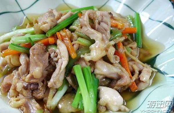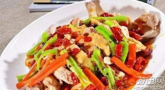 东安子鸡,因用刚开鸣的小公鸡烹制而成,故名。本菜特色是特点:用嫩母鸡和红辣椒煸、烧而成。菜色呈红白绿黄四色相映,鸡肉肥嫩,味道酸辣鲜香。
