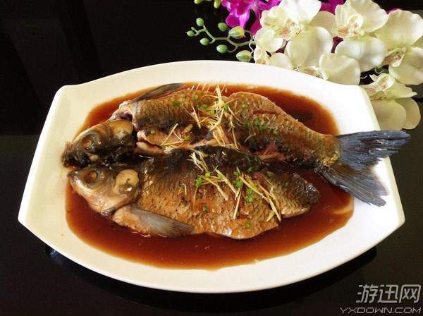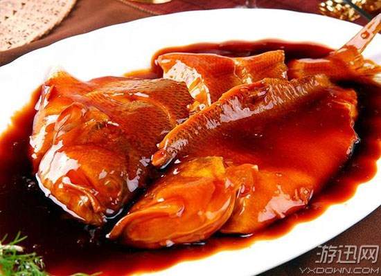 “西湖醋鱼”是浙江杭州传统风味名菜。此道菜选用西湖鲲鱼作原料,烹制前一般先要在鱼笼中饿养一两天,使其排泄肠内杂物,除去泥土味。烹制时火候要求非常严格,仅能用三四分钟烧得恰到好处。烧好后,再浇上一层平滑油亮的糖醋,胸鳍竖起,鱼肉嫩美,带有蟹味,道鲜嫩酸甜。 肉滋别具特色。其年代可追溯到宋朝,可谓是历史悠久。