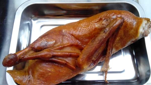 用肥鸭熏制而成。成菜色泽金黄,皮脂厚润,肉质鲜嫩,气味芳香,别有风味。
