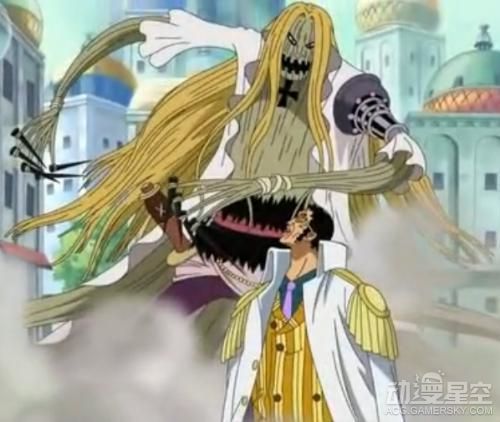 战国之所以被称为佛之战国,就是因为他能变身成佛。他的果实能力是人人果实-佛型,虽说动物系人人都能变身,但是像战国这样变得如此强大的还真不多。大多数动物系变身后不会增添战斗手段,战国是个例外,变身大佛后他具备了一掌打出冲击波的能力,连黑胡子都扛不住。