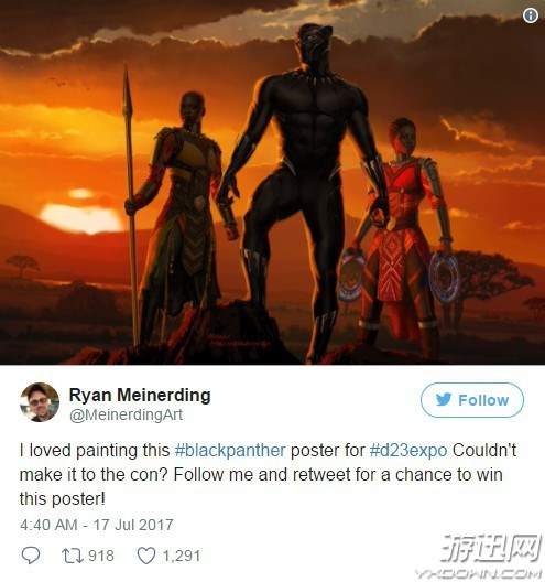 虽然漫威超级英雄新片《黑豹》要于明年2月才能上映,但是最近影片的定妆照、片场照却接连放出。在D23 Expo期间,漫威公布了《黑豹》新海报,日前漫威工作室的概念画师Ryan Meinerding,在自己的推特上将这张海报的原画公开。