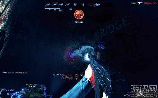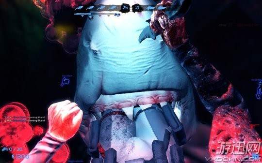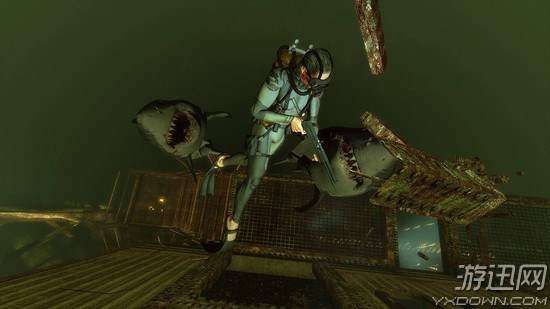 在Blood and Gold模式中,游戏是4个潜水员对阵2条鲨鱼,如果玩家扮演的是20英尺长的大白鲨,速度和感觉是你最好的武器,你需要用你锋利的牙齿将猎物撕成两半。而选择潜水员时,则必须在深渊中寻宝升级你的武器库,用一系列的武器保护好你自己,包括水枪、水下突击步枪以及水雷等。