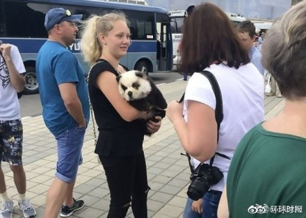 日前,俄罗斯索契一名摄影师在炎热天气下,抱着一只“熊猫宝宝”租借予游客拍照赚钱,有市民看不过眼因此报警拯救“熊猫”。警察到场后才发现,“熊猫宝宝”原来是被染成黑白色的松狮犬,警方正调查事件。 ????