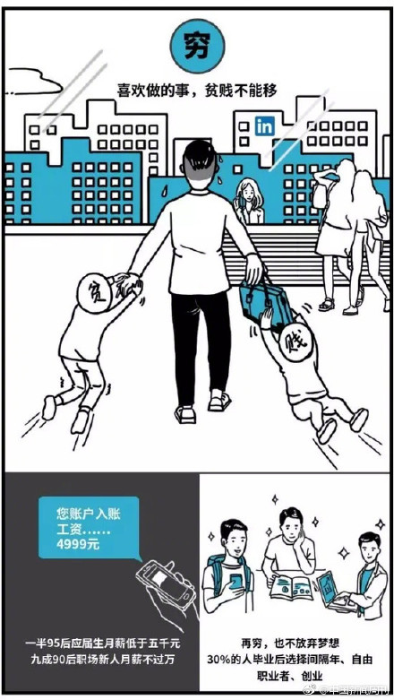 没错,收入低并不是只有你一个人,数据显示,95后应届毕业生中一半人的月收入在5000元以下,工作了3-5年的90后中有53%月收入处于5000-10000元之间。虽普遍收入较低,但90/95后更注重自我成长,30%的人毕业后选择间隔年、自由职业者或自主创业。
