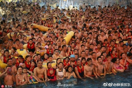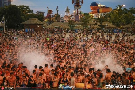 水上乐园挤了3万人...进了这个池子能不能降温解暑我不敢说,治疗不孕不育应该有奇效。