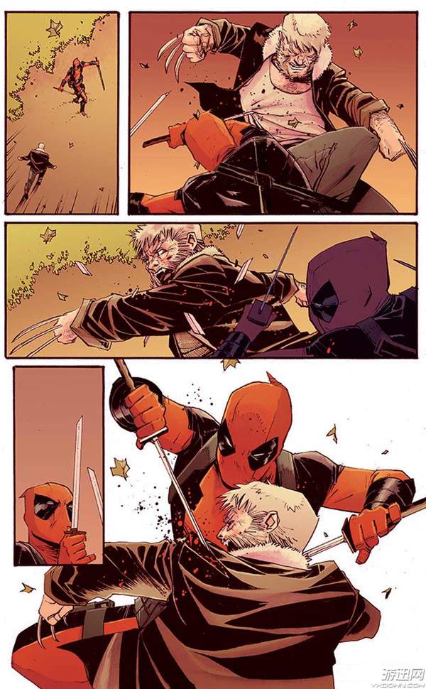 死侍与金刚狼是粉丝们非常喜欢的两位漫威超级英雄,若是二人开战,你是极力赞成,还是坚决反对呢?继漫威宣布《死侍屠杀漫威宇宙2》之后,这位杀手级吐槽之王将与金刚狼展开大战,不过是“暮狼罗根”,实力稍显悬殊,图中罗根惨遭“贱贱”的双剑插胸。