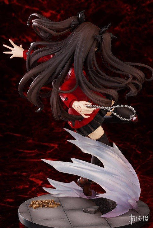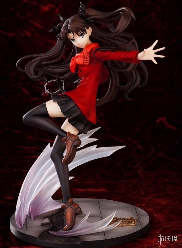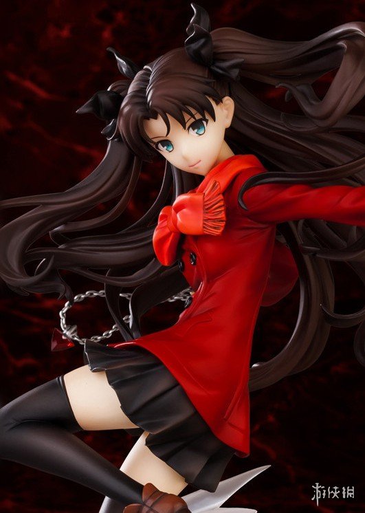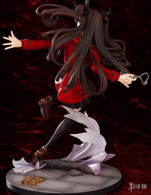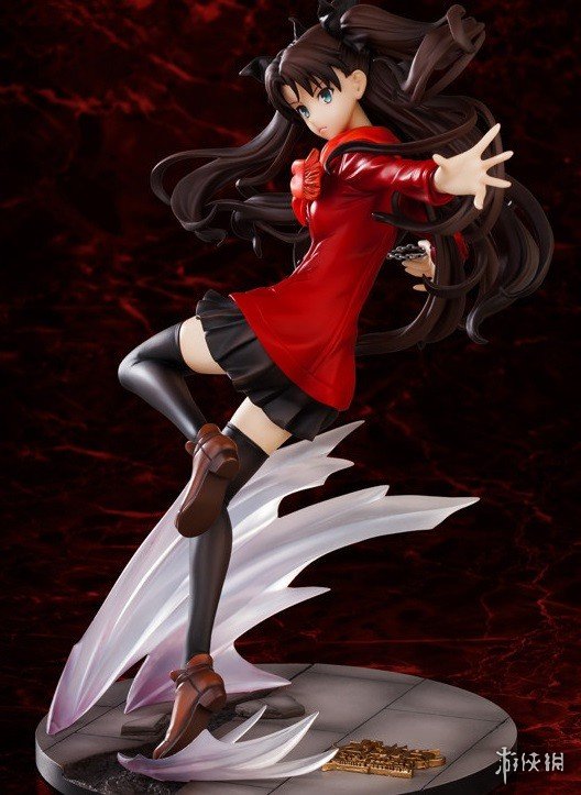 本款远坂凛手办再现了她在“UBW篇”中的设定,造型方面采用了大家最为熟悉的红色上衣、黑色短裙和丝袜组合,视觉效果较强。配合凛抛洒宝石的战斗动作、飘舞的双马尾和底座上搭载的特效配件,剧情中激烈战斗的一幕在这里得到了大幅还原。