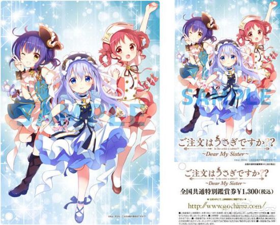 漫画家Koi原作,KINEMA CITRUS和WHITE FOX制作的两季电视动画《请问您今天要来点兔子吗?》一直以来都凭借轻松治愈的氛围、强大的声优阵容、可爱的美少女在阿宅中间保持着高人气。自从今年(2017年)3月份宣布剧场版跳票到11月11日上映之后,这部作品的动向就一直牵动着粉丝们的心。就在昨天(7月19日)官方公布了剧场版《请问您今天要来点兔子吗??~Dear My Sister~》的主视觉图、剧情介绍和电影预售特典券等新情报。
